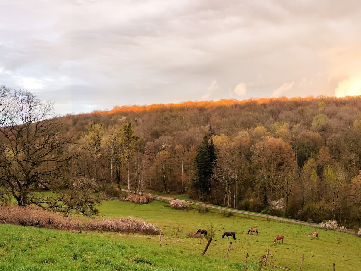 Die Ranch liegt weit ausserhalb von Saint‑Rémy‑en‑Comté, umgeben von Stille, Vogelstimmen und dem Duft der Bäume. Bei uns geht es familiär zu: Wir teilen den Alltag mit unseren Gästen, essen in der Regel gemeinsam und schaffen so eine Atmosphäre, in der man sich schnell zuhause fühlt. Die vier Gästezimmer sind bewusst einfach gehalten, ein Ort zum Ankommen, Durchatmen und Draussensein.